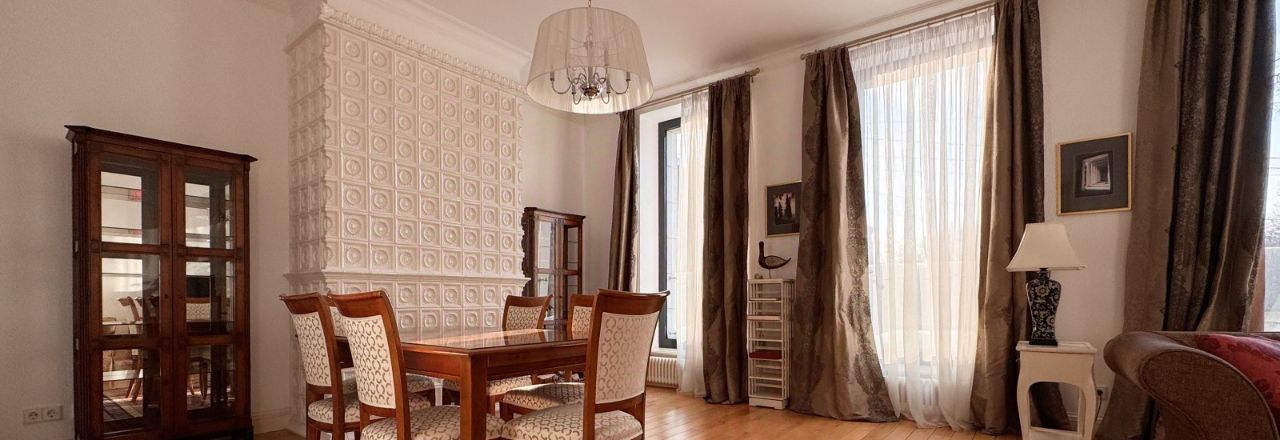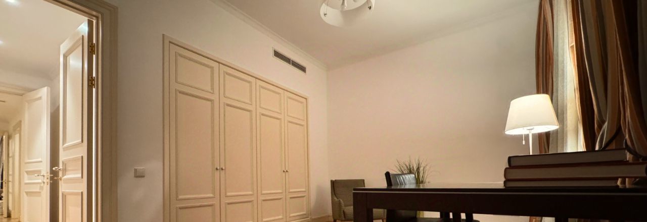 Интерьер оформлен в стиле французской неоклассики. Квартира полностью укомплектована дорогой мебелью и высококачественной техникой. Дизайнерский ремонт выполнен из экологически чистых натуральных материалов.