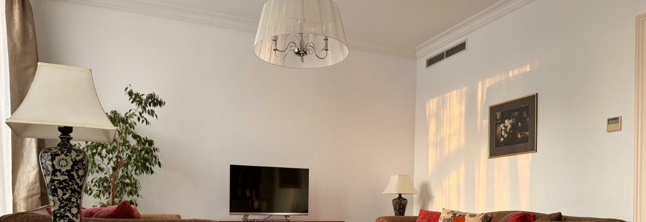 Интерьер оформлен в стиле французской неоклассики. Квартира полностью укомплектована дорогой мебелью и высококачественной техникой. Дизайнерский ремонт выполнен из экологически чистых натуральных материалов.