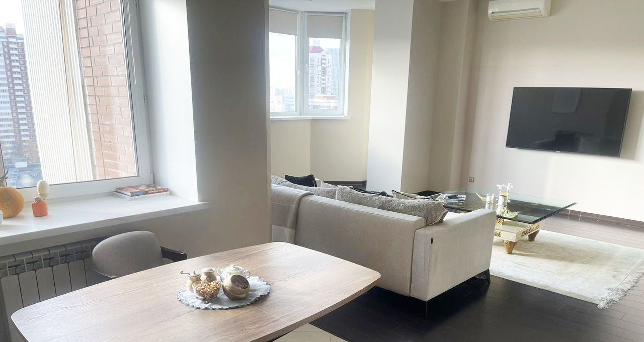 Без животных. Предлагается в аренду стильная, в современном исполнении 3-комнатная квартира. Проходная гостиная и 2 изолированные комнаты. Есть гардеробная и 2 лоджии, одна из которых утеплена. Укомплектована бытовой техникой (телевизор, посудомоечная машина, стиральная машина, духовой шкаф, кондиционеры и т.д.). Обставлена мебелью. Два санузла: в первом ванна, второй гостевой (только раковина и унитаз). В подъезде консьерж, домофон, видеонаблюдение. Есть возможность самостоятельно арендовать машиноместо в подземном паркинге за дополнительную плату. ЗВОНИТЕ СЕЙЧАС!!!