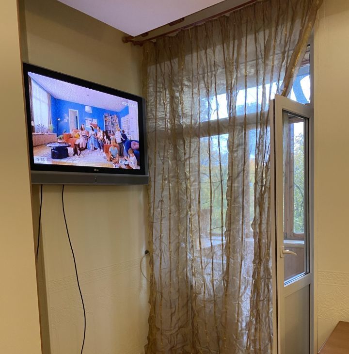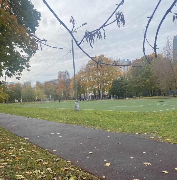 Три окна (комната и кухня столовая) выходят на запад на сторону стадиона школы 1514. Одно в тихий сквер.