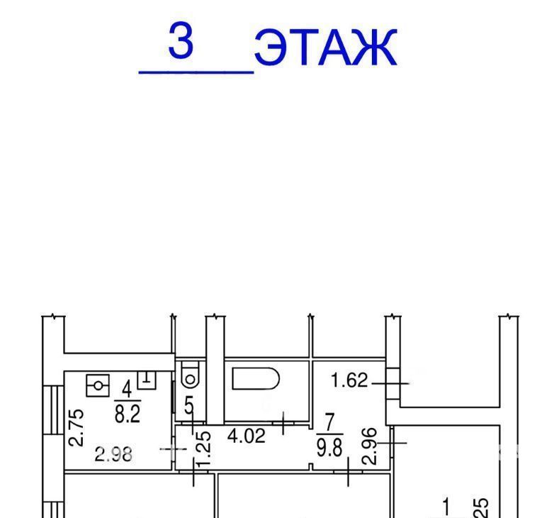 Общая площадь составляет чуть больше 73 кв. м, жилая площадь — 48,9 кв. м, кухня — 8,2 кв. м. Квартира расположена на 3 этаже 5-этажного дома, построенного в 1955 году. Высота потолков — 3 метра.