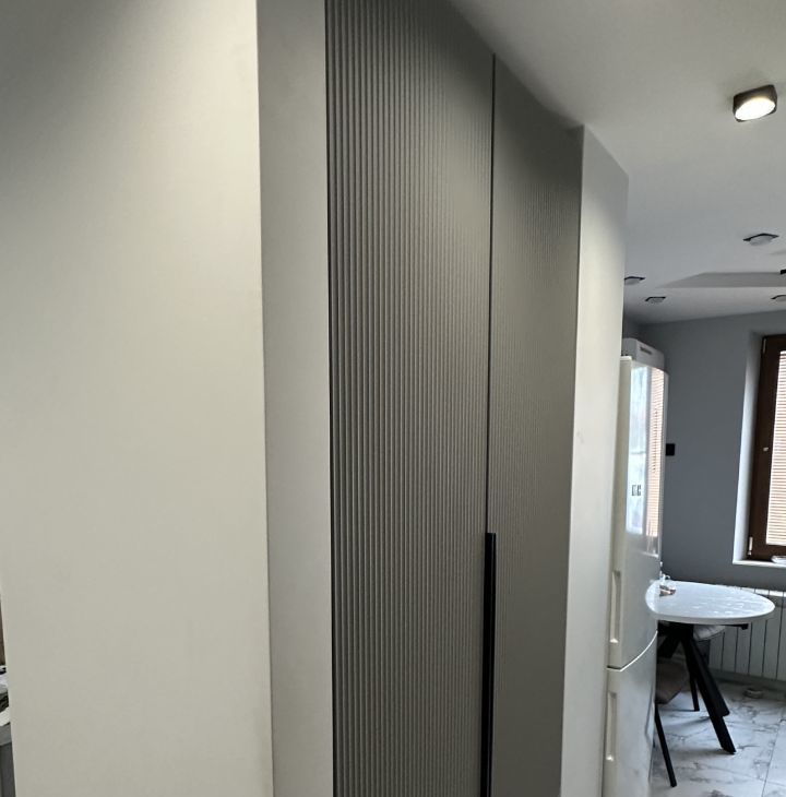 Парящий шкаф для верхней одежды с полкой ( фасады мдф + фреза + пленка soft touch )