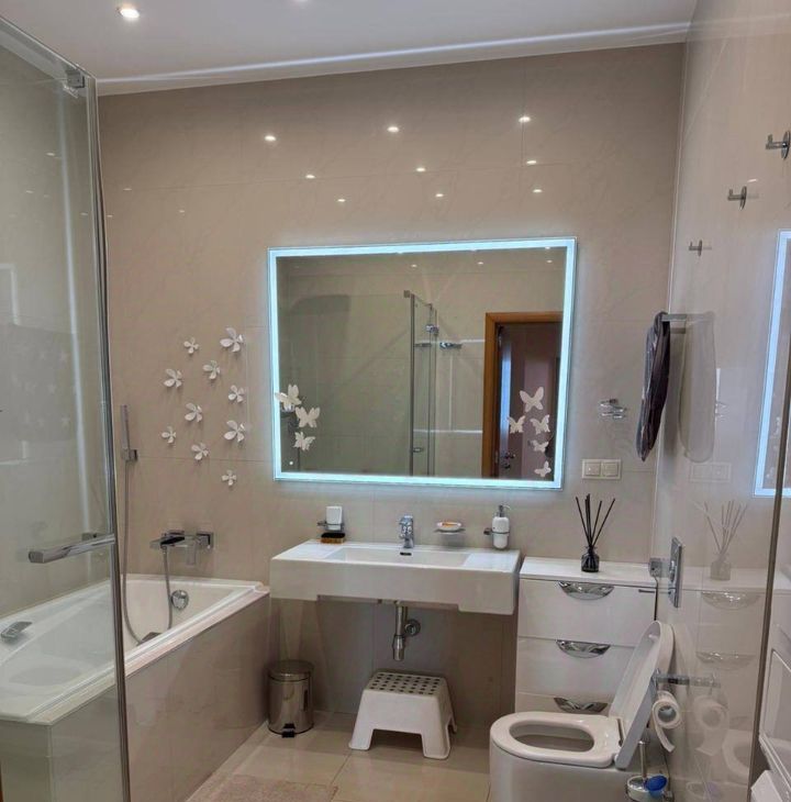 Посудомоечная машина, кондиционеры в КАЖДОЙ комнате, телевизор, плита, духовка, вытяжка, микроволновка, кофемашина.