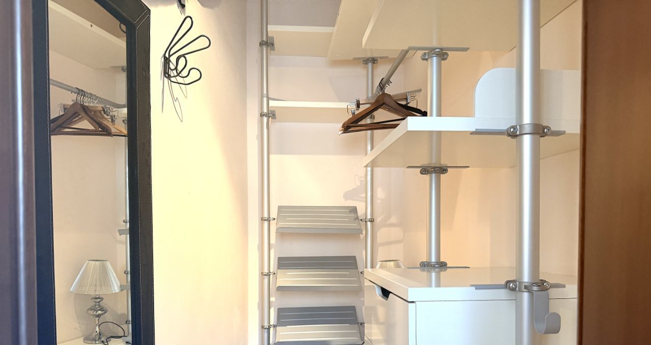 Кухня — итальянская, с продуманными системами хранения и всей необходимой техникой. В квартире остается все необходимое для комфортного проживания.