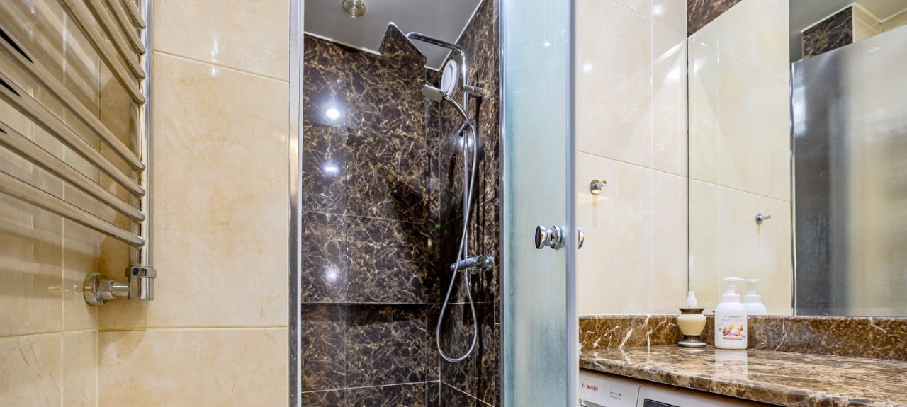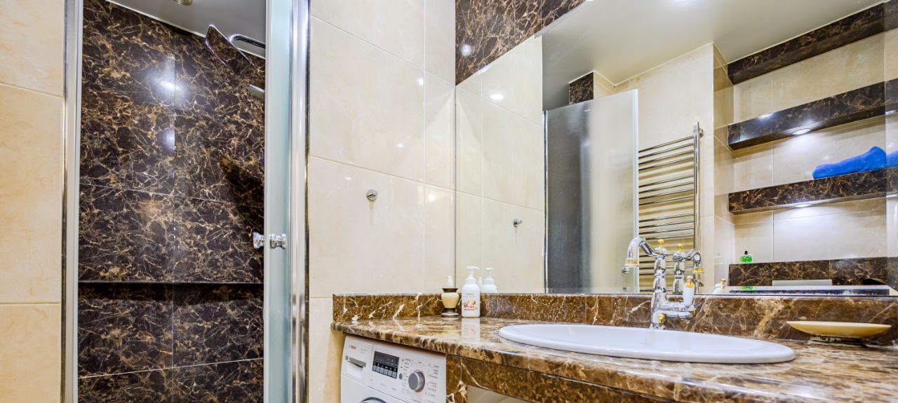 Квартира с хорошим ремонтом в стиле неоклассика, мраморные подоконники, прихожая из массива ясеня, укомплектована современной мебелью и техникой, имеется посудомоечная машина, микроволновая печь, холодильник, керамическая плита и духовой шкаф, каждая комната оснащена кондиционером.
