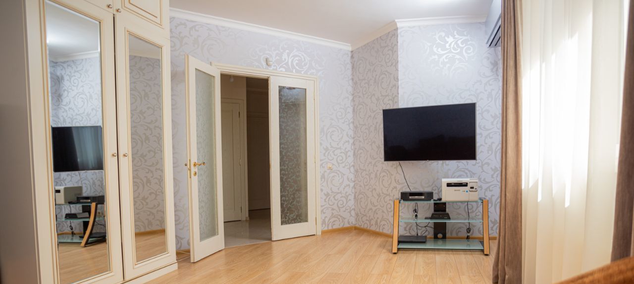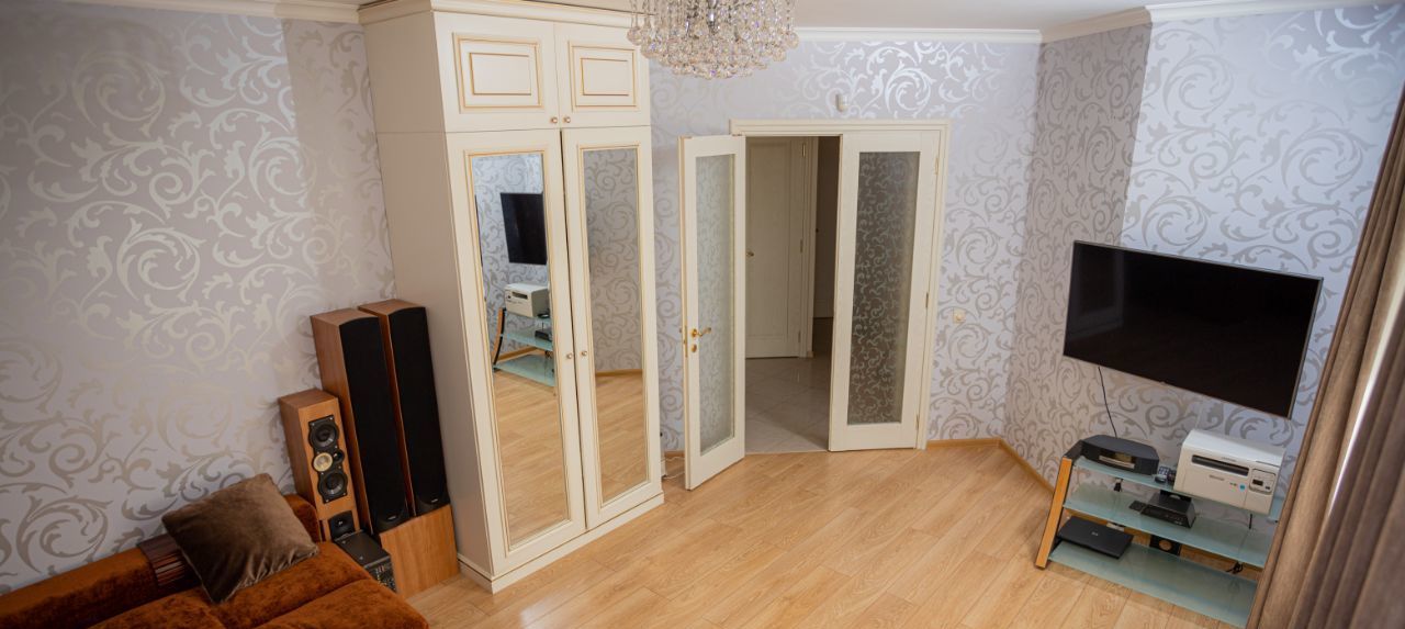 Эта квартира будет радовать каждого члена семьи: женщину - своей просторной кухней , оборудованной бытовой техникой, своей постирочной/ кладовой, красивой ванной и большим количеством шкафов; ребенка - уютной детской комнатой и спортивным комплексом; мужчину наличием подземного паркинга, наличием телевизоров в каждой комнате и мягким диваном.