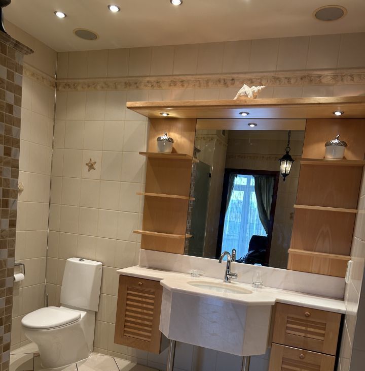 В квартире выполнен дизайнерский ремонт, который придаёт интерьеру современный и стильный вид. В наличии вся необходимая мебель: на кухне и в комнатах. Обустроена техника, включая кондиционер, холодильник, посудомоечную и стиральную машины, а также телевизор. В квартире предусмотрены два совмещённых и один отдельный санузел, оснащённые ванной и душевой кабиной. Есть лоджия и балкон, окна выходят как на улицу, так и во двор, что позволяет наслаждаться видом и тишиной.