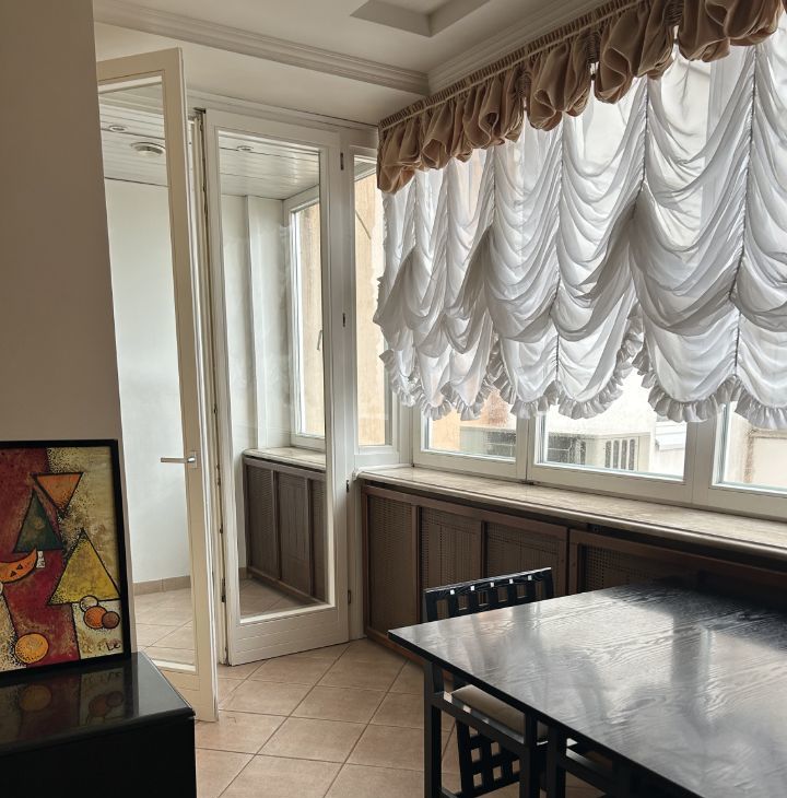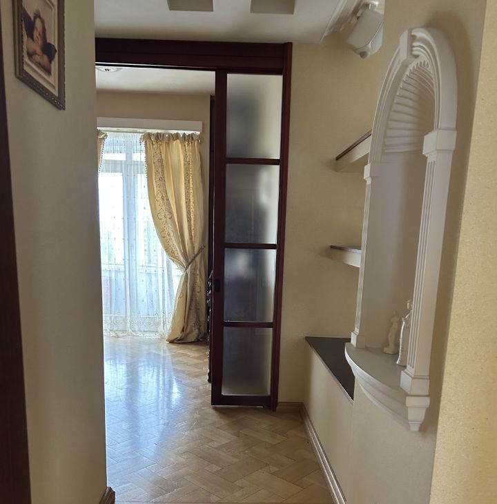 Сдаётся просторная трёхкомнатная квартира площадью 120 кв. м на 16 этаже 25-этажного монолитного дома, построенного в 1998 году. Высокие потолки 3 метра создают ощущение простора. В квартире три комнаты, жилая площадь составляет 72 кв. м, а кухня занимает 9 кв. м. Удобное расположение — всего 6 минут пешком до метро.