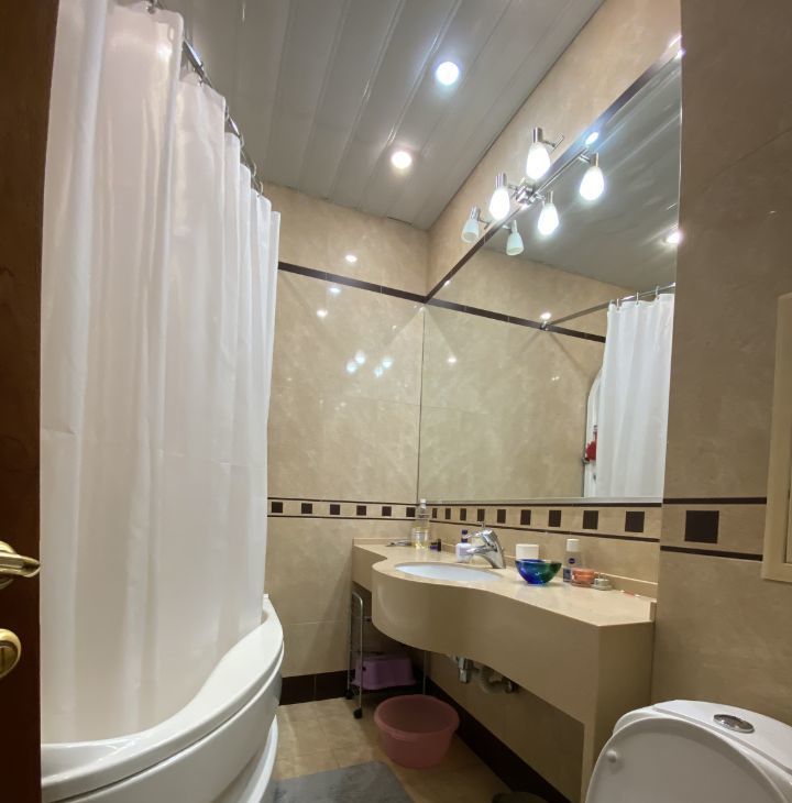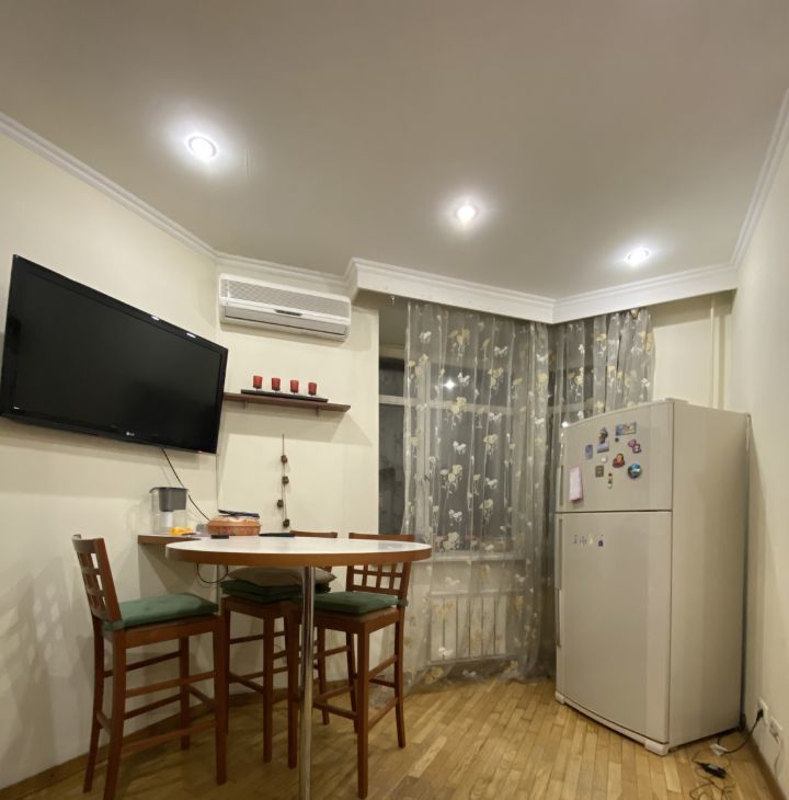 В квартире есть все необходимое для комфортной жизни. Евроремонт, современная мебель на кухне и вся необходимая техника: кондиционер, холодильник, посудомоечная и стиральная машины, телевизор. Два совмещенных санузла, в одном из которых ванна, в другом — душевая кабина. Из окон открывается вид во двор, есть лоджия для приятных вечеров на свежем воздухе.