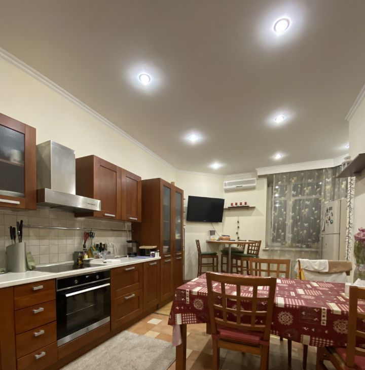 Предлагаем в аренду просторную трехкомнатную квартиру с евроремонтом в кирпичном доме. Общая площадь — 116 кв. м, жилая — 62 кв. м, кухня — 20 кв. м. Квартира расположена в кирпичном доме, построенном по индивидуальному проекту. Высокие потолки 3 метра добавляют ощущение простора. До метро всего 10 минут пешком.