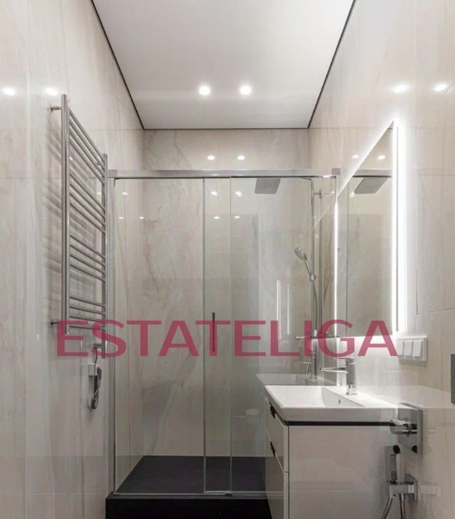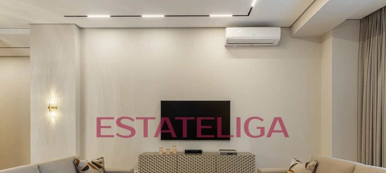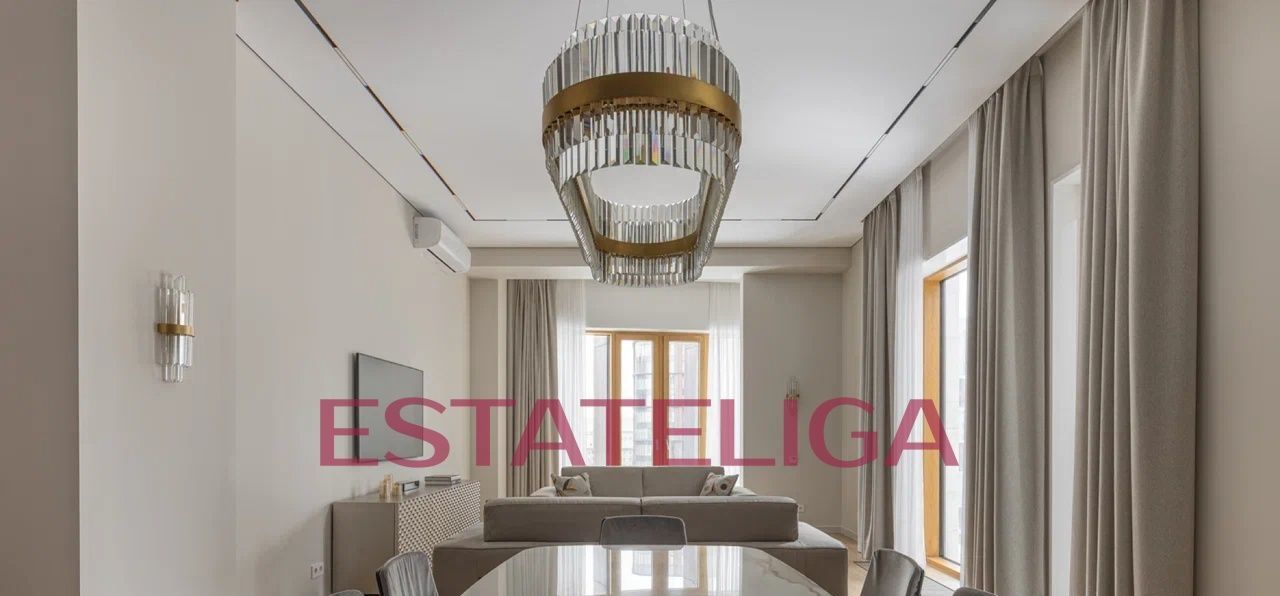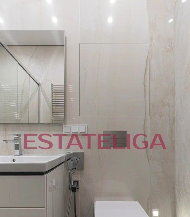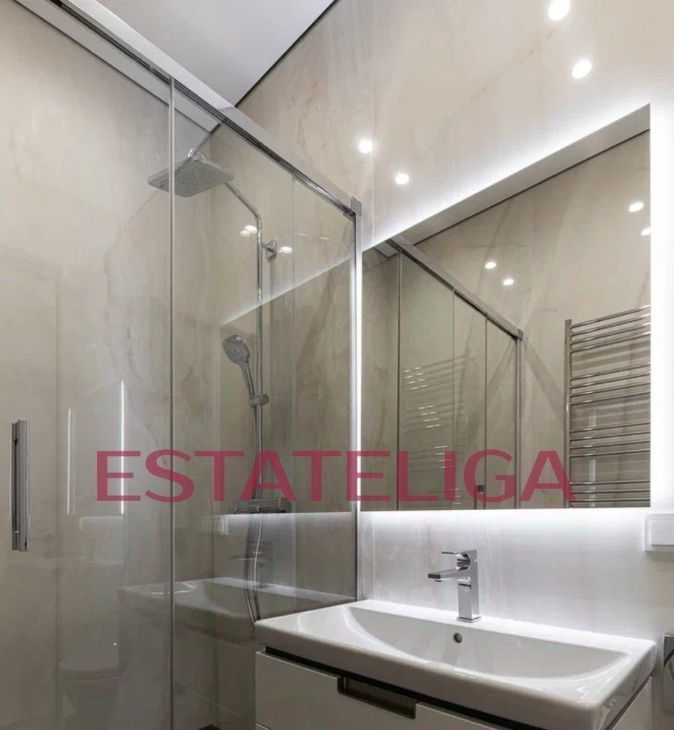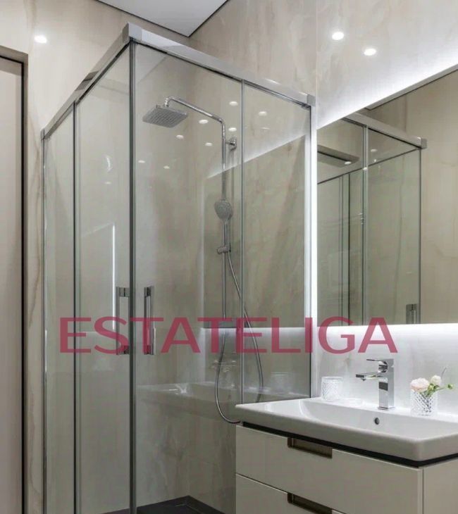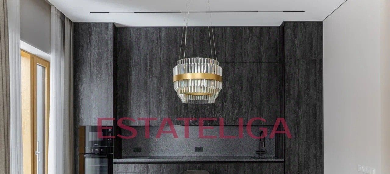 Планировкой квартиры предусмотрено: 2 мастер-спальни с собственными с/у и гардеробными, просторная кухня-гостиная с видом на пруд, 3 совмещенных с/у, включая постирочную комнату.
