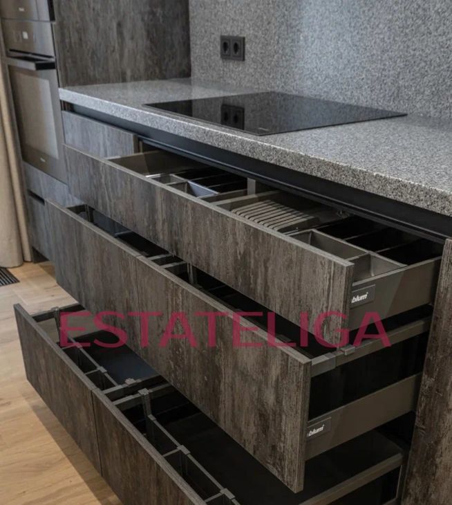 КУХНЯ - кухонный гарнитур со встроенной техникой: холодильник, духовой шкаф, индукционная варочная панель, вытяжка, СВЧ печь, посудомоечная машина - MIELE.