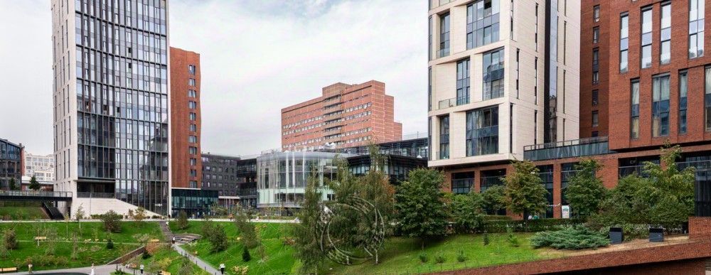 Комплекс находится под круглосуточной охраной. Все кварталы объединяются пешеходными мостиками.