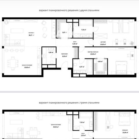 Симметричность и три мокрые точки позволяют создать в будущем две или три спальни с просторной кухней-гостиной. Высота потолка 3,3 м дает возможность наполнить пространство большим объемом воздуха в каждом помещении.