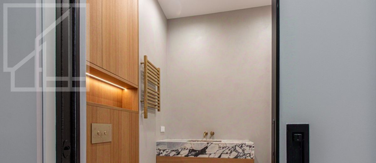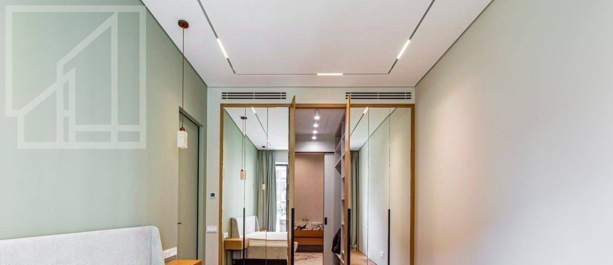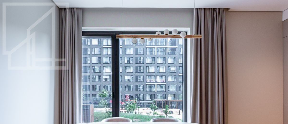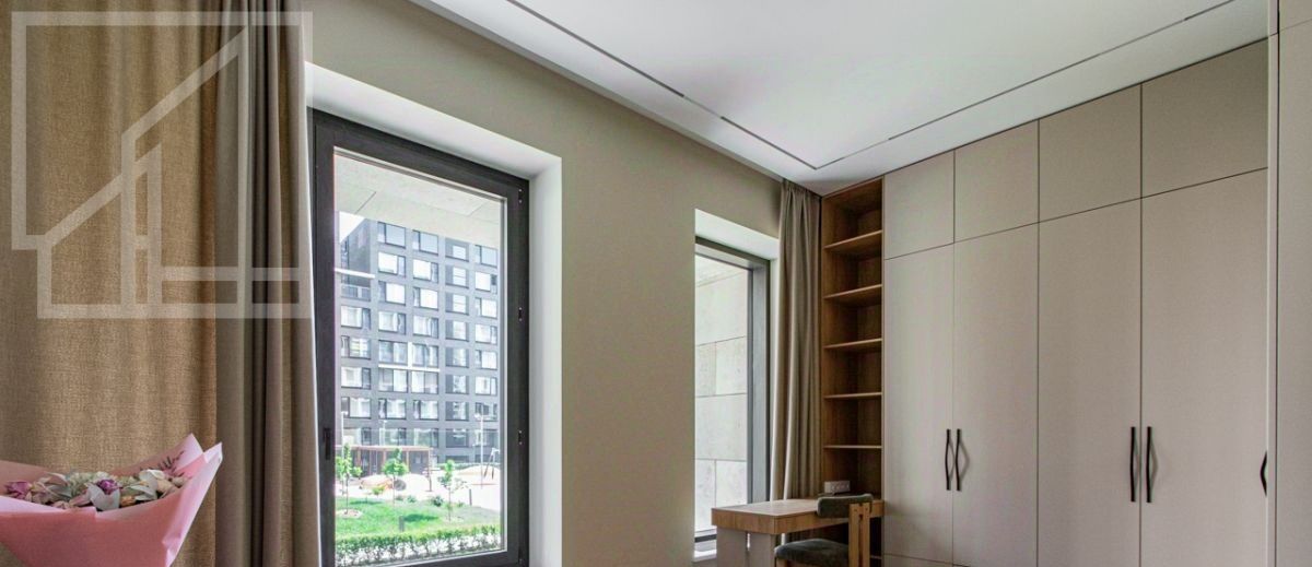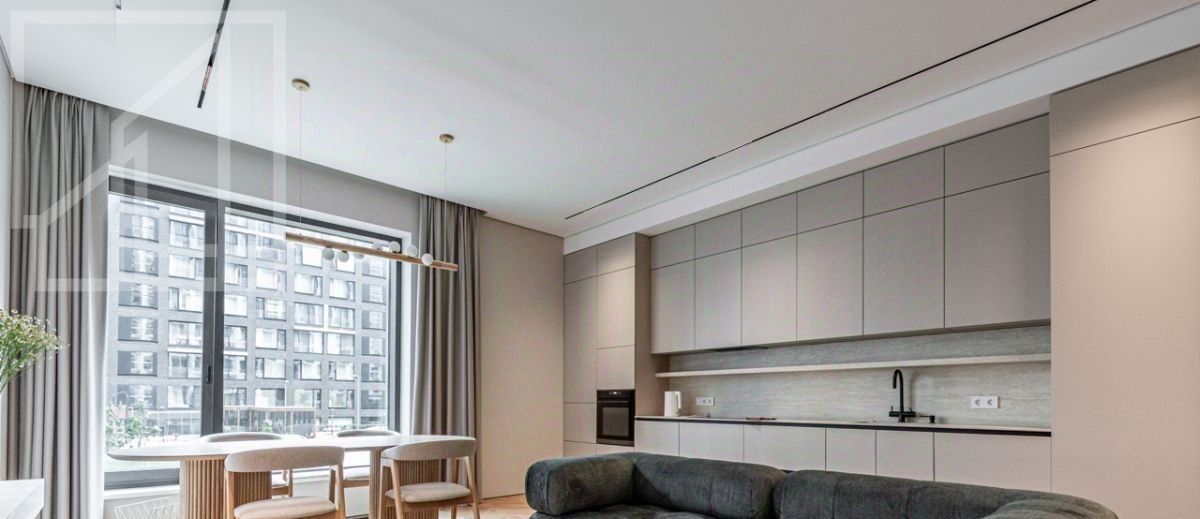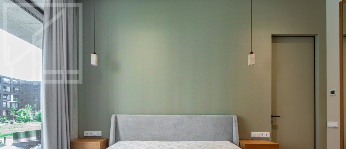 Планировка: гостиная с зоной кухни, мастер-спальня с гардеробной и ванной комнатой, кабинет, душевая комната, гардеробная при входе. Выполнена новая отделка в современном стиле с применением натуральных материалов. Квартира полностью меблирована и оборудована всей необходимой бытовой техникой. Высота потолка 3,2 м. Окна выходят в тихий двор. Мебель в кабинет докупают по запросу. Можно сделать из кабинета вторую спальню.
