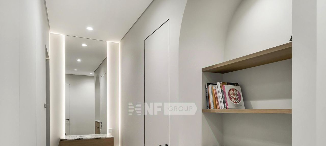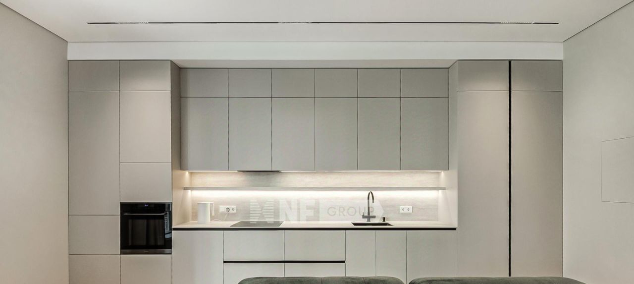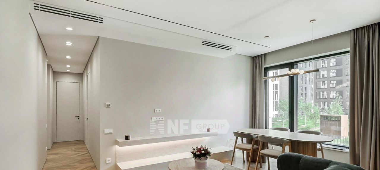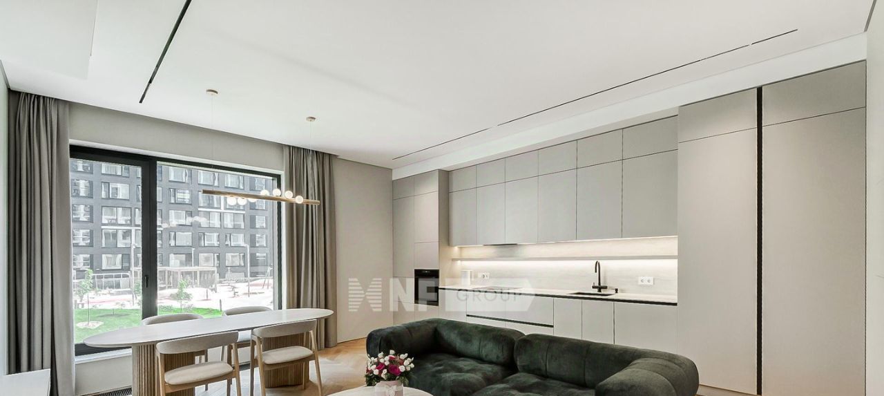 Выполнена новая отделка в современном стиле с применением натуральных материалов (отделка новая, никто не проживал), квартира полностью меблирована и оборудована всей необходимой бытовой техникой.