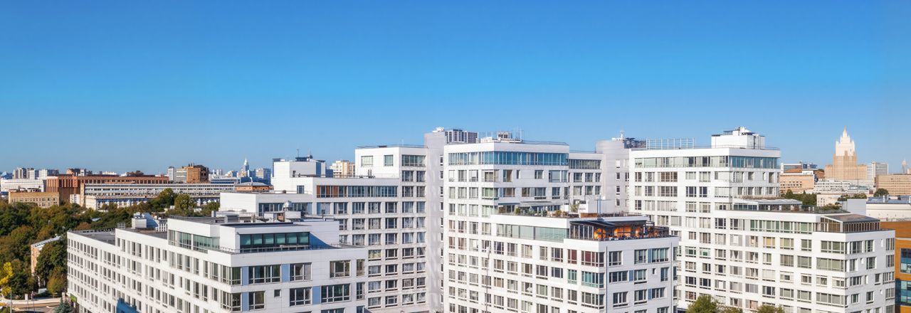 Главное о доме. "Fusion Park" — элитный комплекс в Хамовниках с квартирами от 98 до 400 м². Архитектура собрана из кубических корпусов: жилые фасады выдержаны в серой палитре, а медные объёмы заняты офисами и общественными функциями. Внутри работает фитнес с сауной и бассейном, библиотека и бильярдная. Входные группы оформлены камнем и деревом, на закрытой территории — аллеи и зоны отдыха. Для жителей предусмотрен подземный паркинг на 360 машин и сервис консьержей. Внутри двора камерность поддерживают тихие маршруты и озеленение.