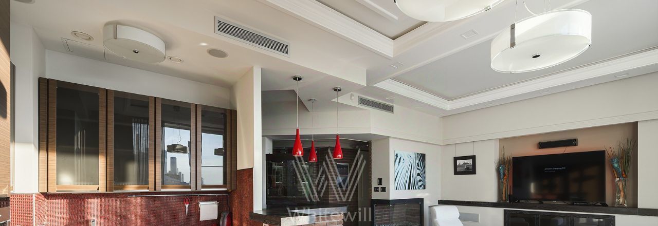 Бонус партнёрам 50%. Просторная квартира с 2-мя спальнями площадью 138 м² расположена на 8 этаже элитного комплекса Fusion Park. В квартире с потолками 3.3 метра выполнен авторский ремонт в стиле "лофт" с настоящей кирпичной кладкой. Интерьер декорирован яркими элементами дизайна и аквариумом. На полу уложена массивная доска "морёный дуб". Планировка: просторная кухня-гостиная с обеденной зоной с уютным биокамином, две спальни, два совмещенных санузла с ванной и душевой кабиной, гостевой санузел, две гардеробные комнаты, прихожая.