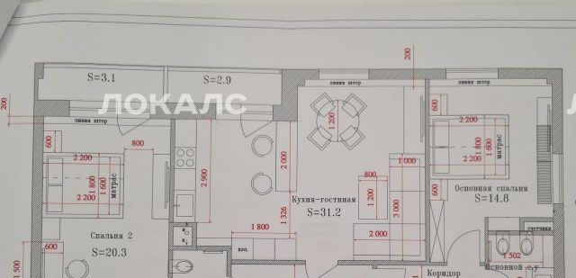 Планировка квартиры: кухня-столовая 35м2, основная спальня 20м2 с большой гардеробной комнатой, вторая спальня/детская комната 15м2, 2 полноценных санузла, отдельно постирочный блок. На кухне вся техника встроенная, 2 холодильника!