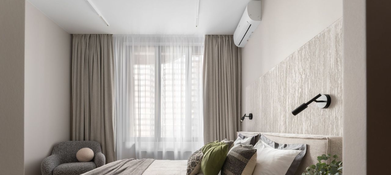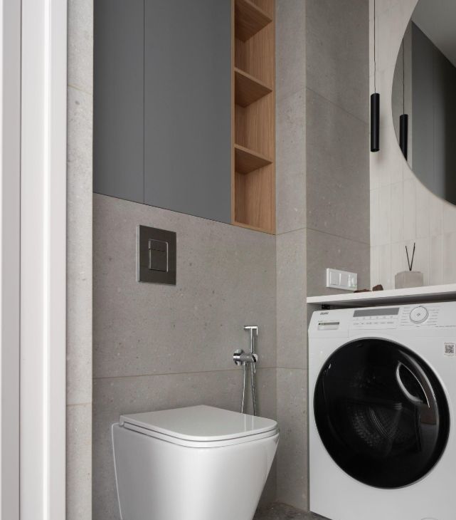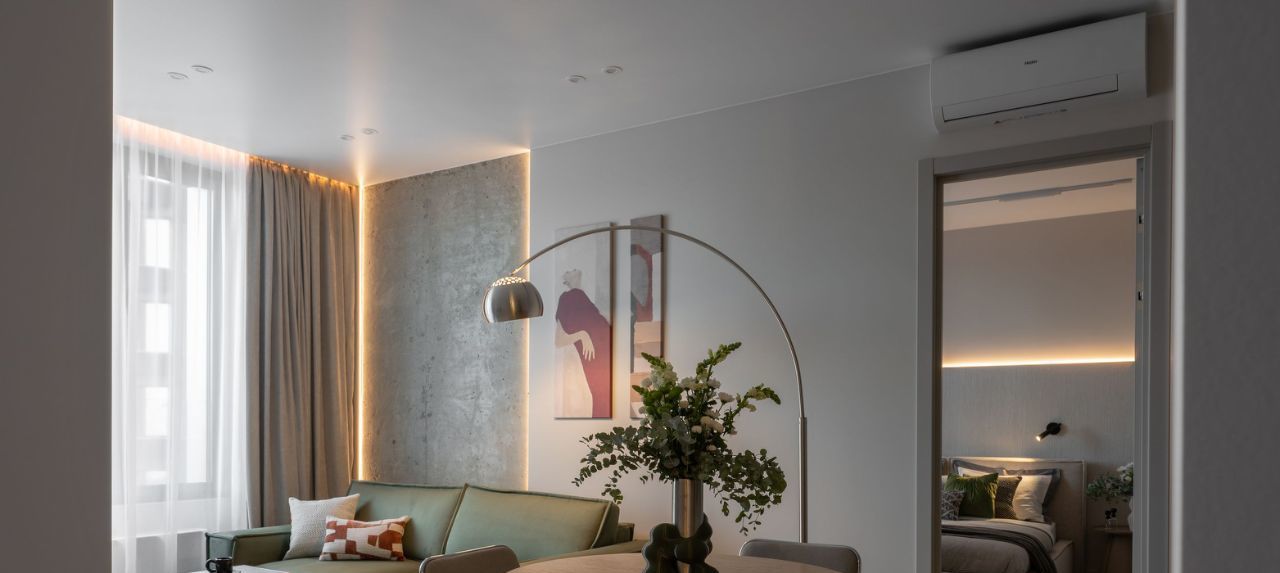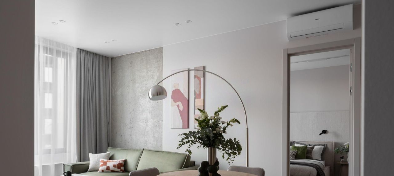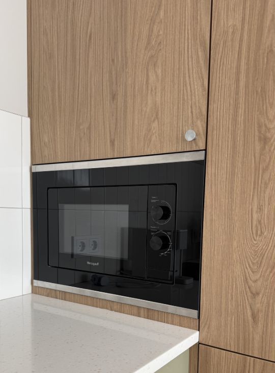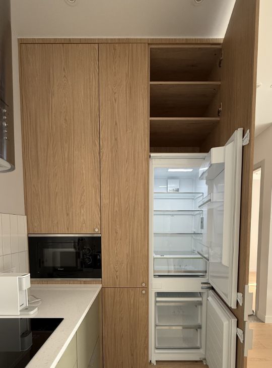 Квартира укомплектована встроенной кухонной мебелью и встроенной бытовой техникой (встроенный холодильник с морозильной камерой, индукционная варочная поверхность, посудомоечная машина, микроволновая печь с функцией духовки, вытяжка), в каждой комнате установлен кондиционер Haier. Теплый пол на кухне, прихожей и в санузлах.