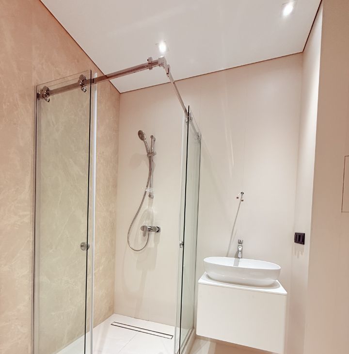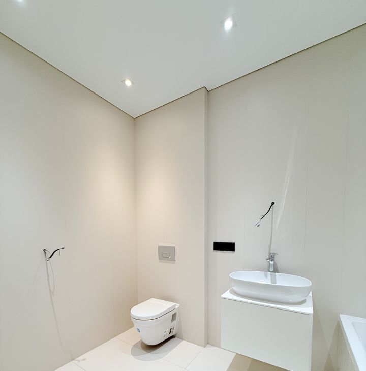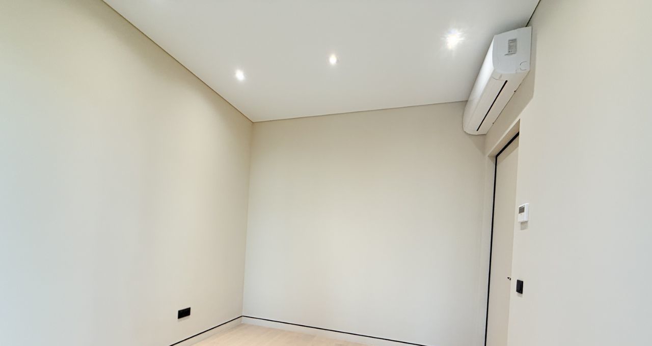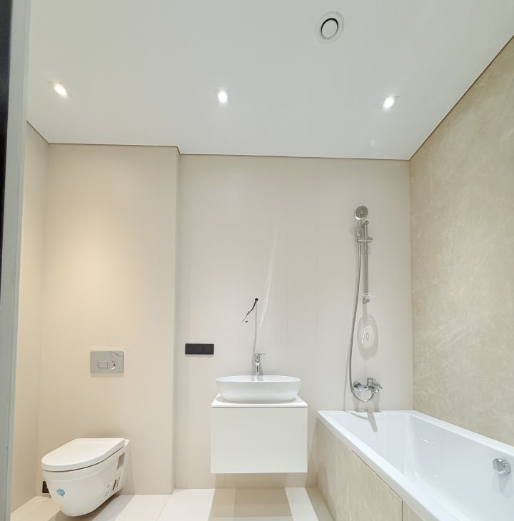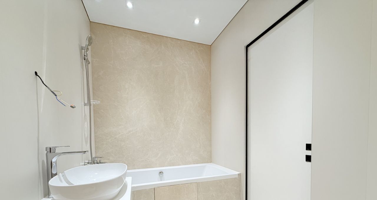 Общая площадь: 67.3 кв.м., с двумя изолированными спальнями, одна из которых мастер спальня со своей гардеробной и своей ванной комнатой, кухня - гостиная 25 кв.м., гостевой санузел с душевой кабиной. Квартира расположена на 18 этаже.