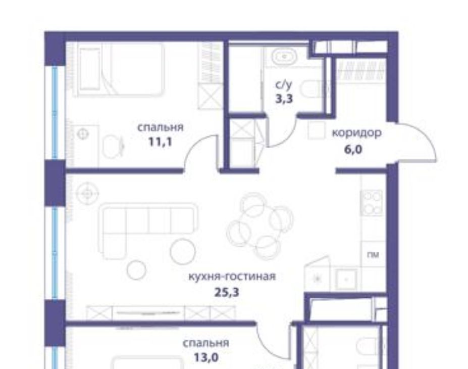 3-к кв. Москва ул. Василия Ланового, 7с1 (67.3 м²)