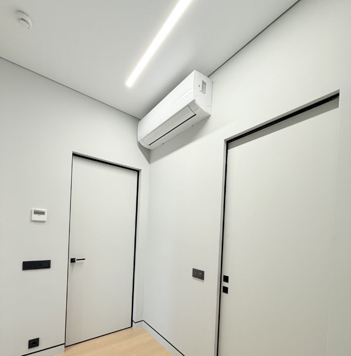Мебель и техника: квартира укомплектована встроенной кухонной мебелью и встроенной бытовой техникой (встроенный холодильник с морозильной камерой, индукционная варочная поверхность, духовой шкаф, посудомоечная машинка, вытяжка), в каждой комнате установлен кондиционер. Теплый пол на кухне, прихожей и в санузлах, в комнатах паркетная доска.