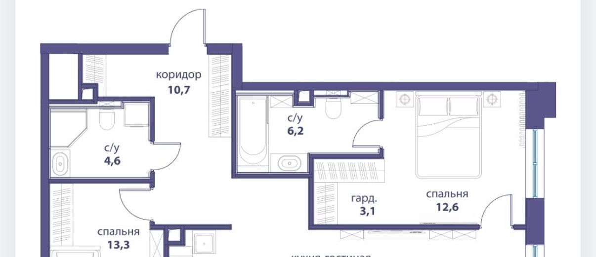 Потрясающая планировка - спальни разделены кухней-гостиной. Два сан.узла. Основная спальня с собственной гардеробной комнатой.
