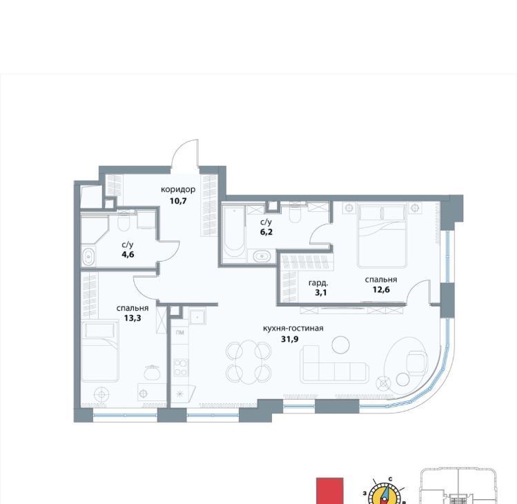 В квартире есть всё необходимое для комфортного проживания: кондиционер, холодильник, телевизор и стиральная и посудомоечная машины.Кухня и комнаты оборудованы стильной мебелью. Ванные комнаты оснащены современной душевой кабиной и ванной.Уютная и функциональная планировка позволяет эффективно использовать пространство.
