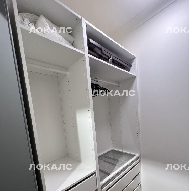 Встроенный шкаф в прихожей, отдельная кладовка и гардеробная в мастер-спальне.
