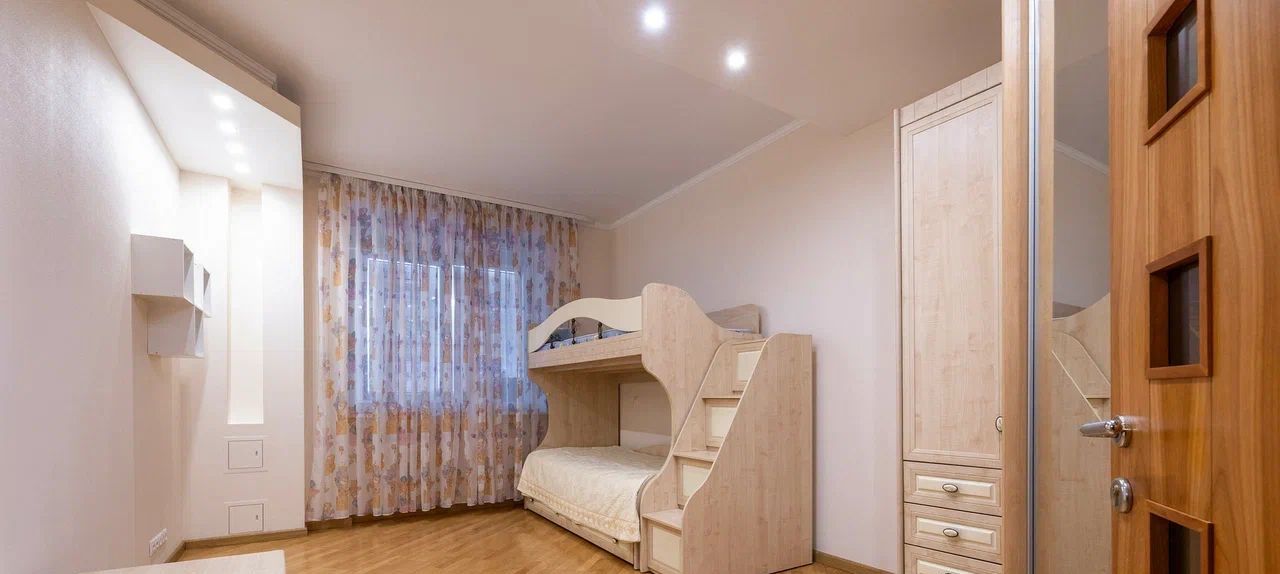 Планировка: Просторный холл с зеркальными шкафами, гостевой санузел с душем, огромная светлая гостиная с диваном и выходом на лоджию. Кухня с отдельной обеденной зоной, постирочная, мастер спальня, детская спальня с двухэтажной кроватью, большая ванная комната а также теплый балкон (30кв.м).