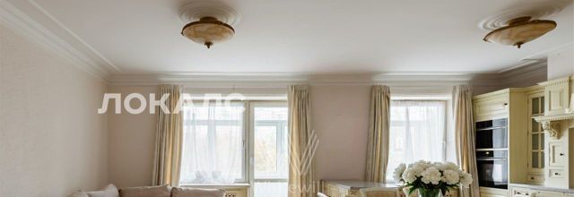 Просторная квартира с двумя спальнями общей площадью 123 м² в в доме "Вересаева, 6" на четвёртом этаже. Выполнена отделка в классическом стиле в светлых тонах. Благодаря панорамным окнам и потолкам высотой 3 метра пространство наполнено естественным светом. Спланирована гостиная, кухня с обеденной зоной, две спальни, кабинет, ванная комната, два санузла, постирочная, гардеробная, прихожая, лоджия и балкон. Квартира частично меблирована и полностью оборудована бытовой техникой, установлен подогрев полов. Из окон открывается вид в тихий двор. Предусмотрено машино-место в подземном паркинге за дополнительную плату.