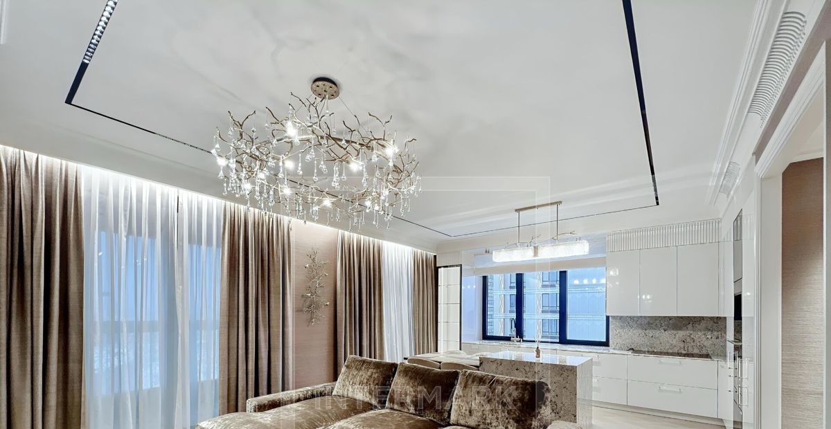В квартире: С мебелью, М/место в подземном паркинге, Посудомоечная машина, Стиральная машина, Сушильная машина, Бойлер, Джакузи, Душевая кабина, Теплые полы, Интернет, Видовая квартира, Европланировка, Ванна, Интерьер в современном стиле, Консьерж, Гардеробная комната, Лифт, Около воды, Ремонт - дизайнерский, Кухонная мебель, Окна на улицу, Окна во двор