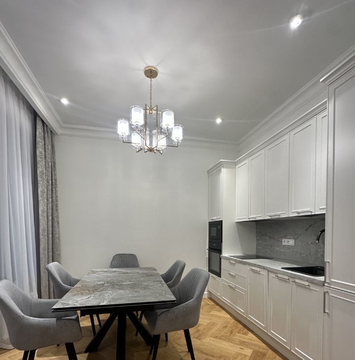 В квартире выполнен ремонт, установлен умный дом и интернет, кухня укомплектована духовкой, микроволновкой, посудомоечной машиной.