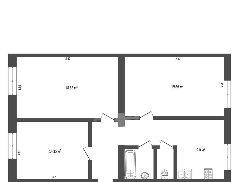 Кухня площадью 9 квадратных метров позволяет комфортно разместить всю необходимую технику, включая посудомоечную машину. В квартире выполнен косметический ремонт, который подчеркивает аккуратность и ухоженность интерьера. Раздельный санузел обеспечивает удобство для всех членов семьи.