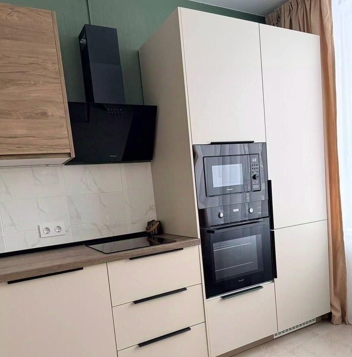 В квартире абсолютно всё новое и куплено специально для неё. Сделанная на заказ кухня со встроенным холодильником и посудомоечной машиной. Полностью оборудованные ванные комнаты. Новые матрасы и диван. В гостиной Smаrt ТV 55 дюймов. Все шкафы с антресолями, диван с ящиком для хранения белья, кровать в спальне с подъёмным механизмом.