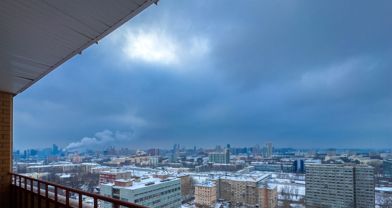 Большая лоджия с потрясающим панорамным видом на Москву. Выходы из лоджии располагаются в кухне-гостиной