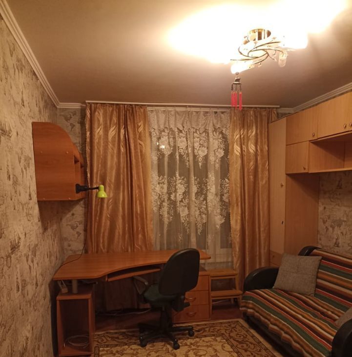 Сдается на длительный срок трехкомнатная квартира с изолированными комнатами.На кухне:кухонный гарнитур, стол.В одной комнате : диван,стол письменный, шкаф, вторая комната детская: шкафы, односпальная кровать, третья комната : диван,шкаф-купе.Санузел раздельный, застекленный.