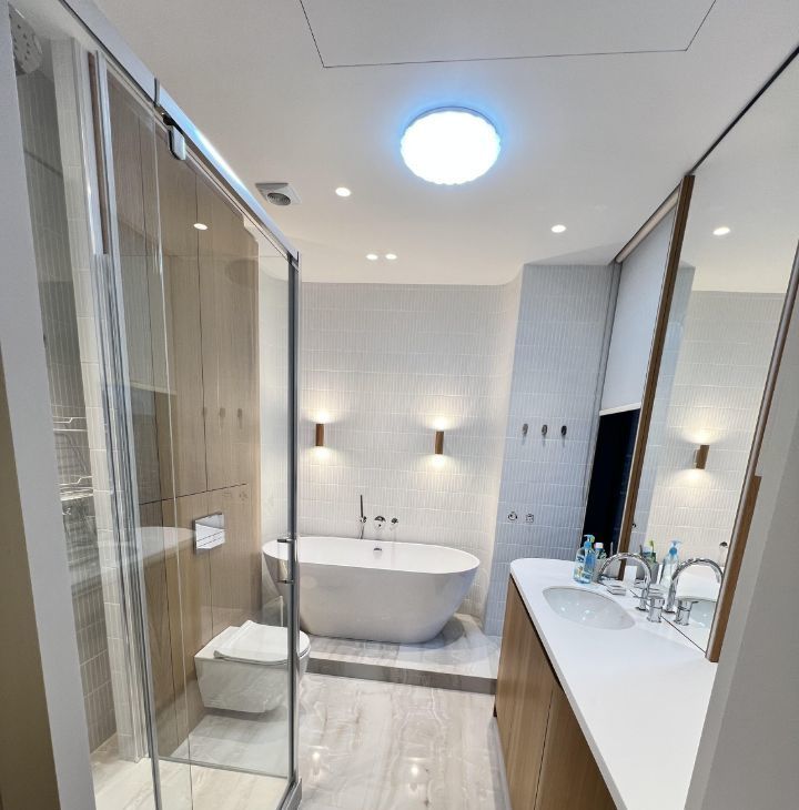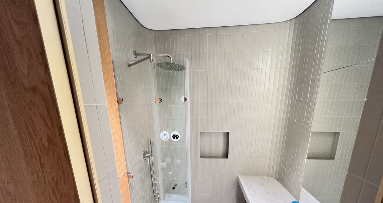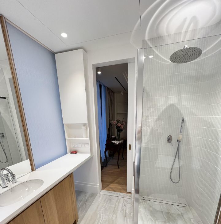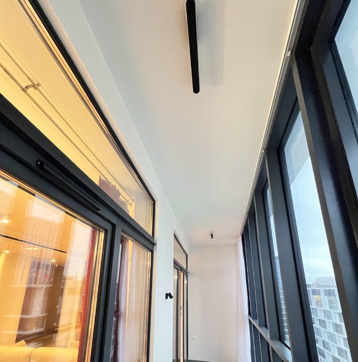 Температуру и доступ свежего воздуха можно регулировать управлением приточно вытяжной вентиляции. В квартире два совмещенных санузла, в одном из которых установлена ванна, а в другом — душевая кабина. Две лоджии с видом во двор станут отличным местом для отдыха, организации пространства для чаепитий или иного.