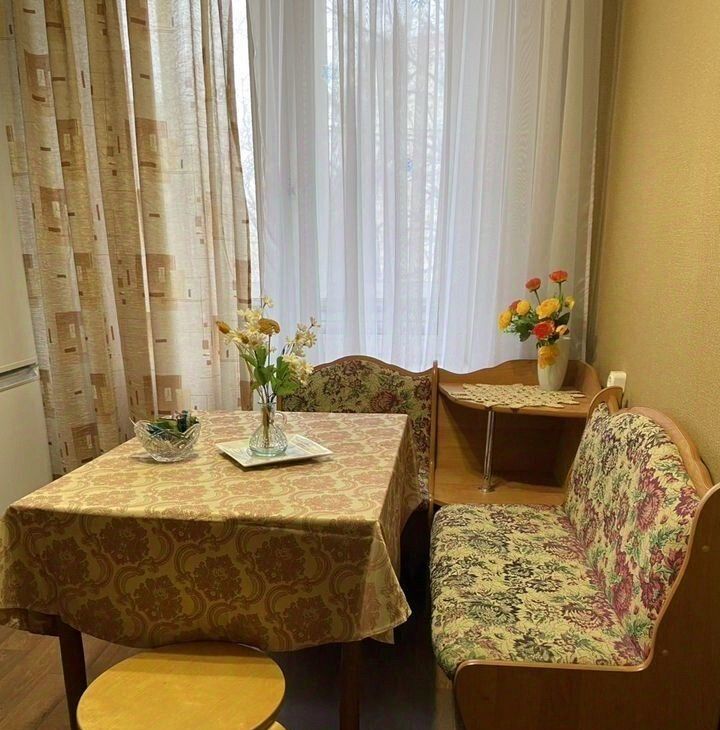 В квартире выполнен косметический ремонт, есть вся необходимая техника: холодильник, телевизор и стиральная машина. Комнаты и кухня меблированы, в квартире можно сразу комфортно жить. Планировка включает одну лоджию и один балкон, окна выходят во двор, поэтому в квартире тихо и спокойно. Ванная комната оборудована ванной, а в отдельном санузле удобно размещены все необходимые элементы.