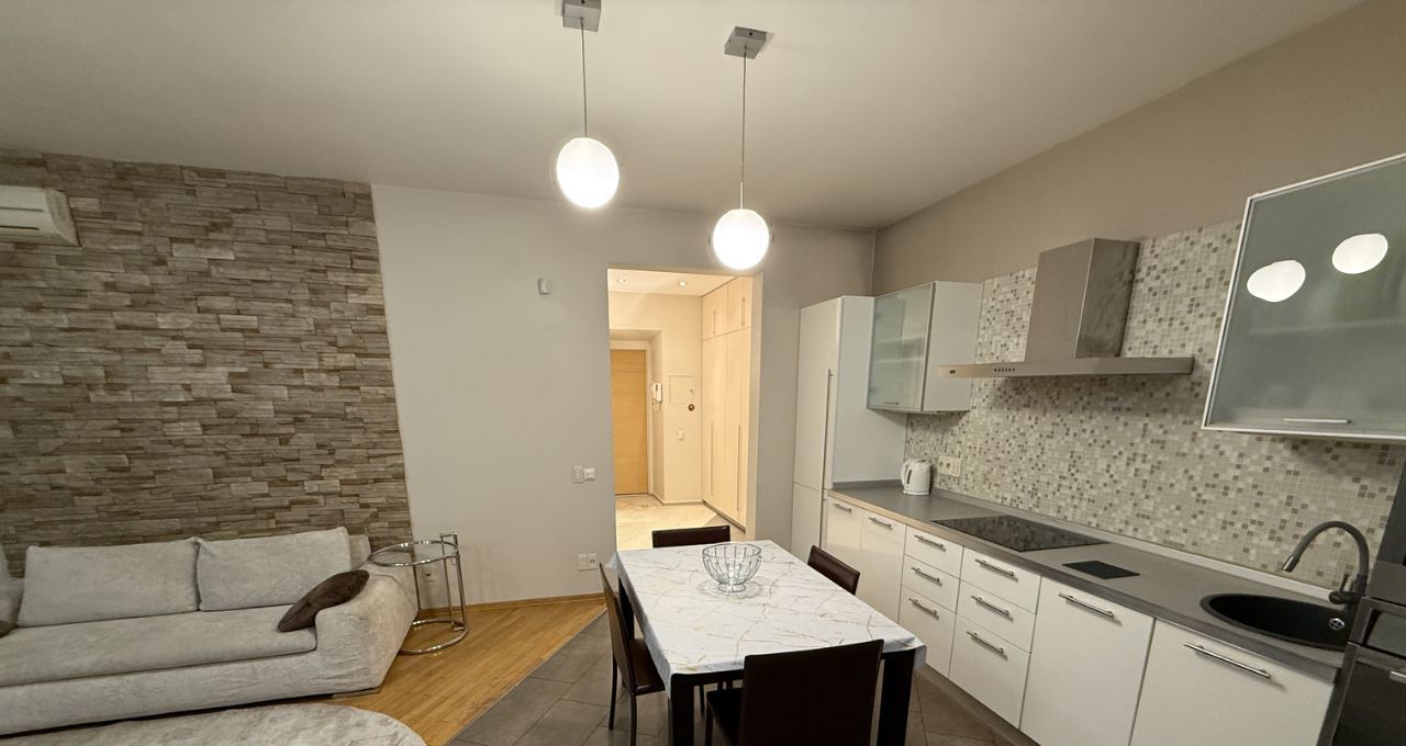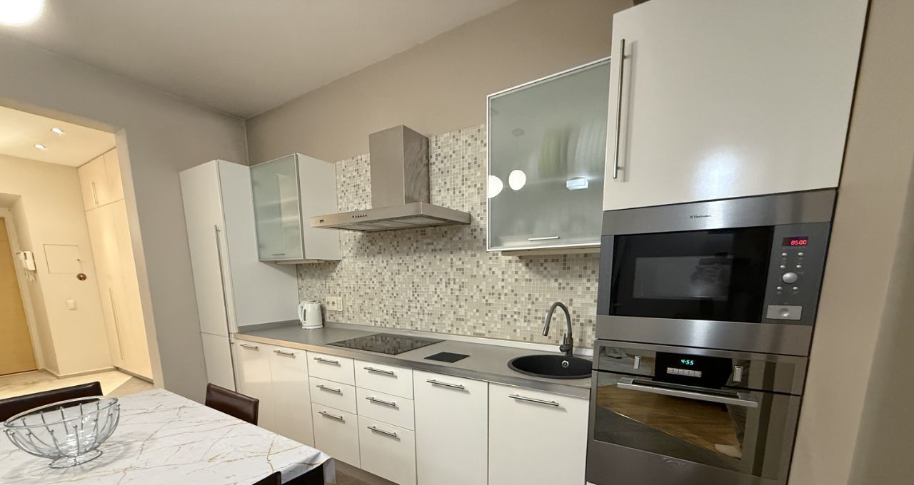 Замечательная, аккуратная, светлая, просторная квартира в непосредственной близости от метро и центра города. Представлена одной просторной гостиной-кухней с обеденной зоной и двумя отдельными изолированными комнатами: спальней и рабочим кабинетом/детской (по вашим запросам!). Состояние квартиры заезжай и живи, есть вся необходимая мебель и бытовая техника: встроенная варочная поверхность, посудомоечная машина, духовой шкаф, свч, вытяжка, стиральная машина автомат, два кондиционера; много мест хранения в виде шкафов и стеллажей. Удобная планировка с расположением окон во двор, тихо, соседи спокойная публика. Рядом вся инфраструктура района, удобное местоположение. Есть возможность для парковки авто во дворе за шлагбаумом.