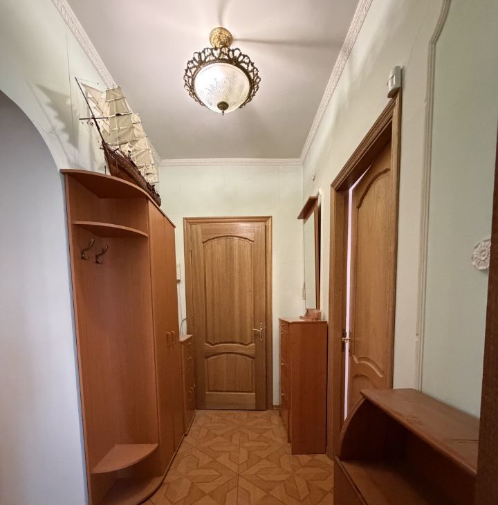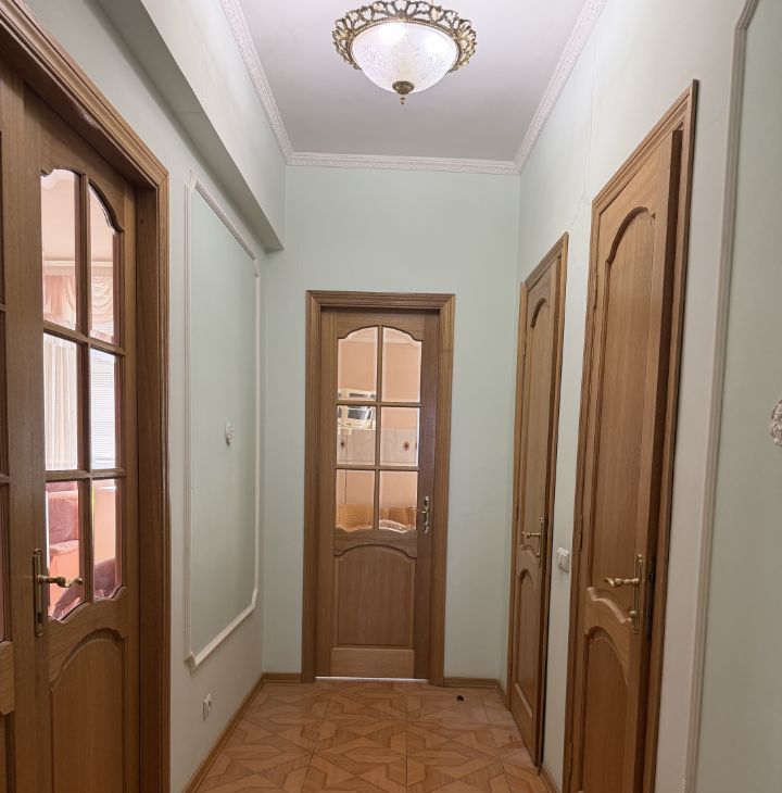 В квартире выполнен современный евроремонт. Просторные комнаты обставлены мебелью, а на кухне есть все необходимое для комфортной жизни. Из техники в вашем распоряжении — кондиционер, холодильник, телевизор и стиральная машина. Санузел раздельный с ванной, а два балкона выходят во двор, что гарантирует тишину и спокойствие.