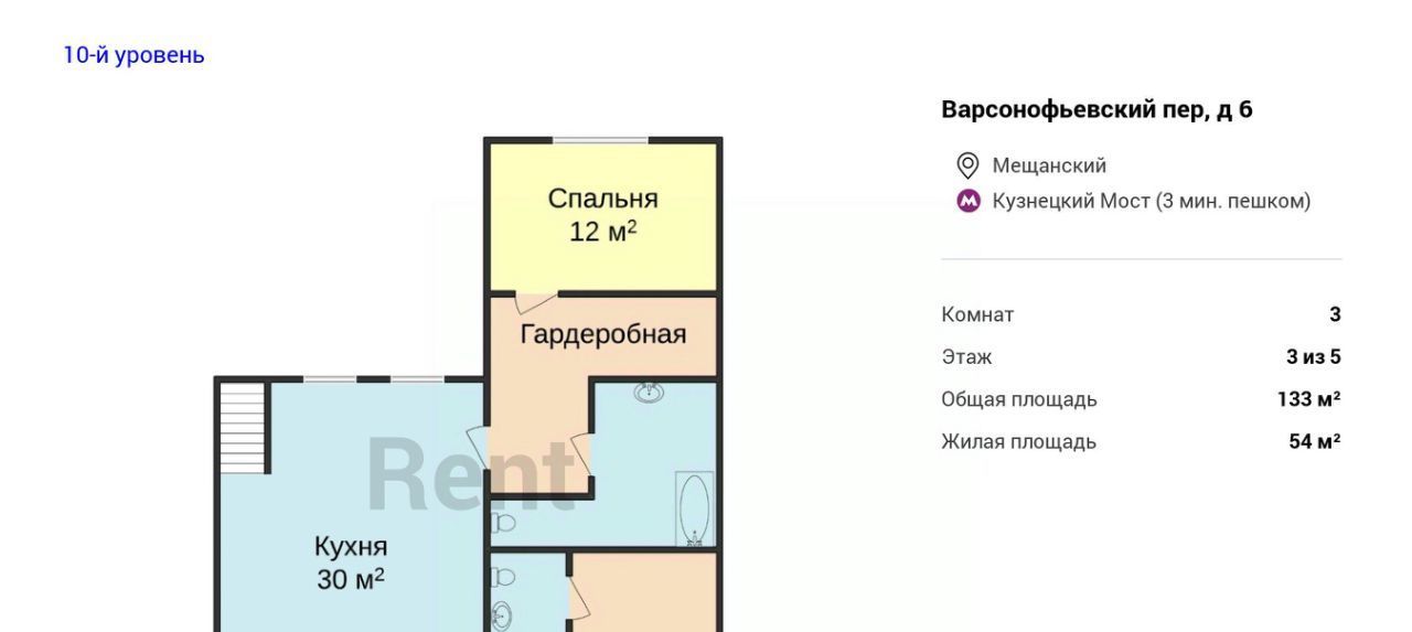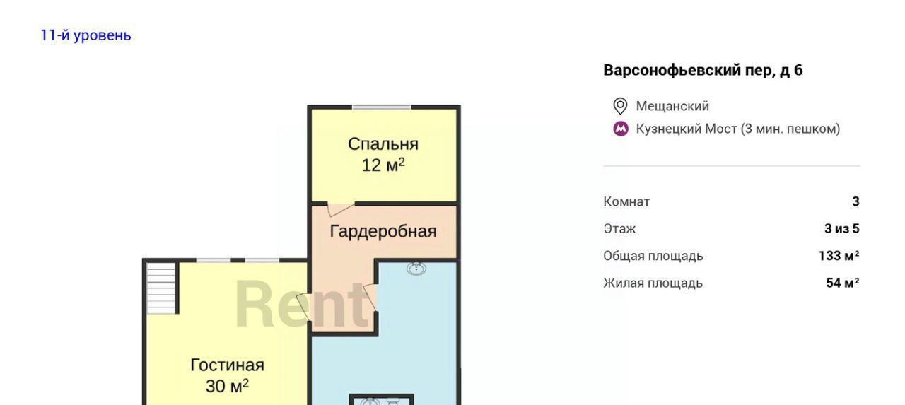 3-к кв. Москва Варсонофьевский пер., 6 (133.0 м²)