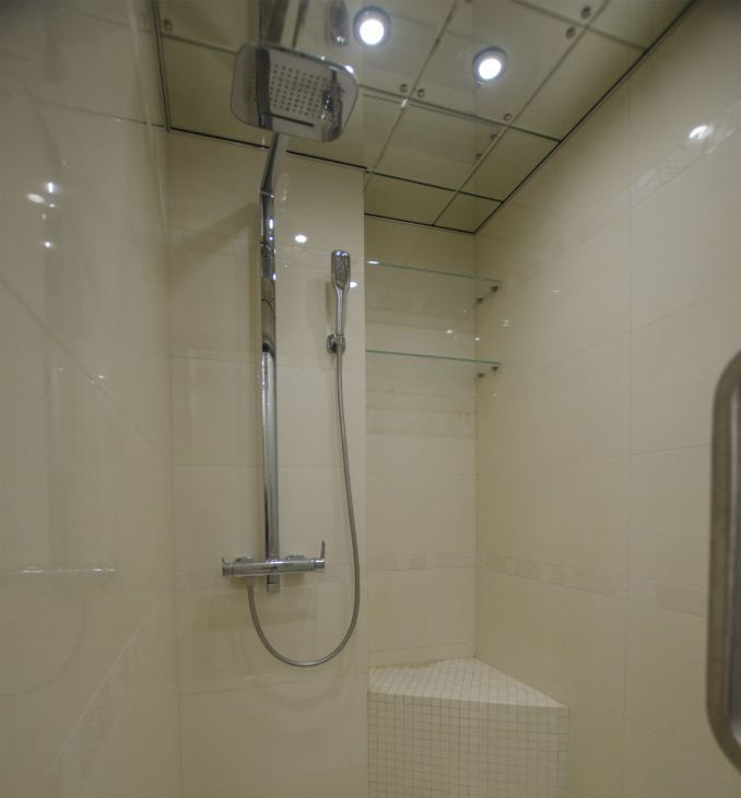 Мастер-спальня с большой гардеробной комнатой и просторным совмещенным санузлом. Телевизор. Санузел с душевой, биде и бойлером.