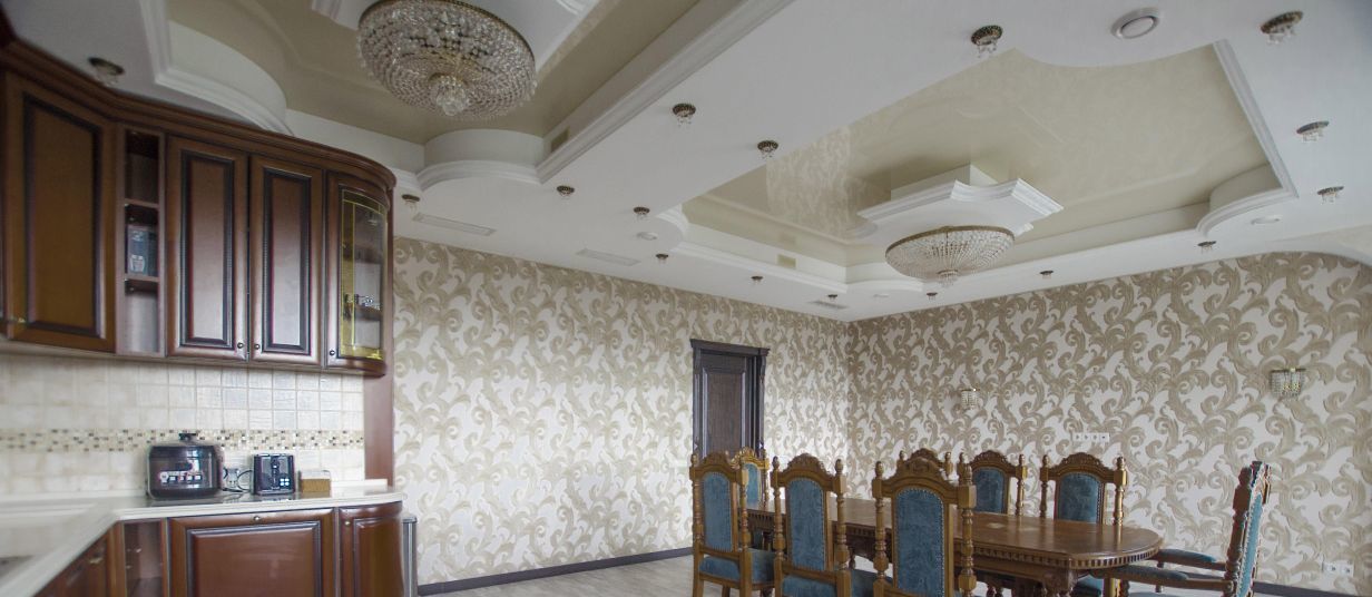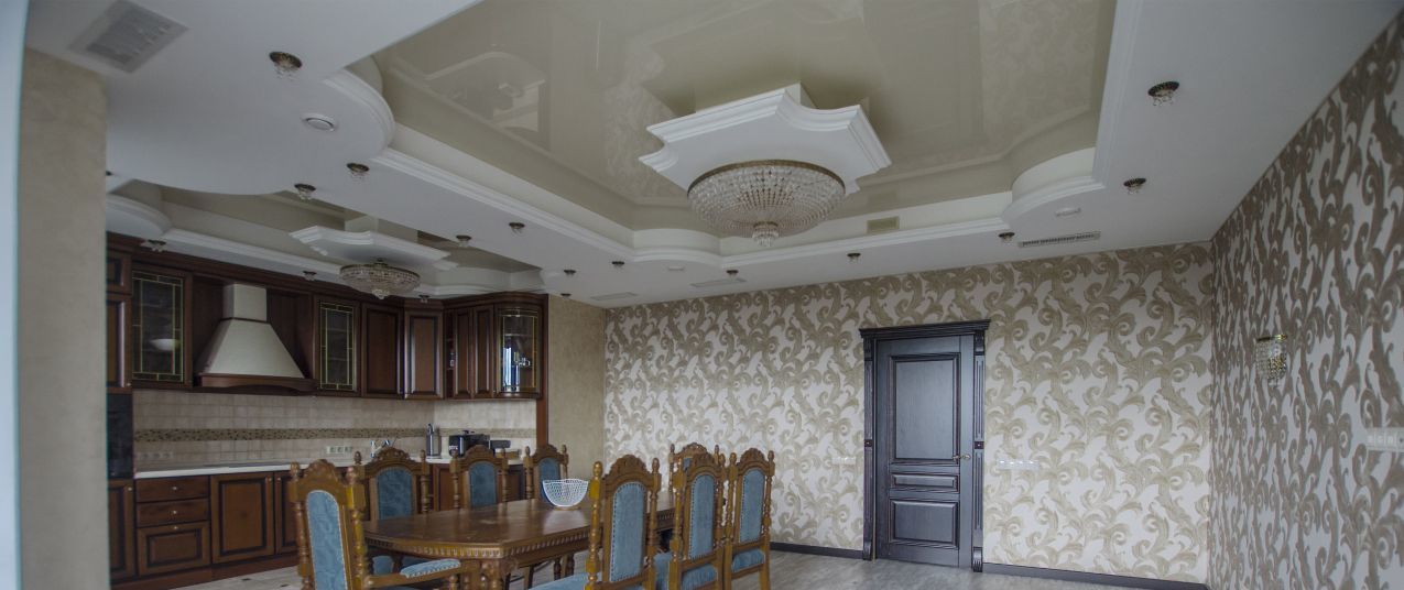 Просторное единое пространство кухни и гостиной. Большая рабочая поверхность, встроенная техника: посудомоечная машина, варочная панель, духовой шкаф, холодильник, очиститель воды Осмос, а так же вытяжка, мультиварка и тостер. Стол на 8 персон.