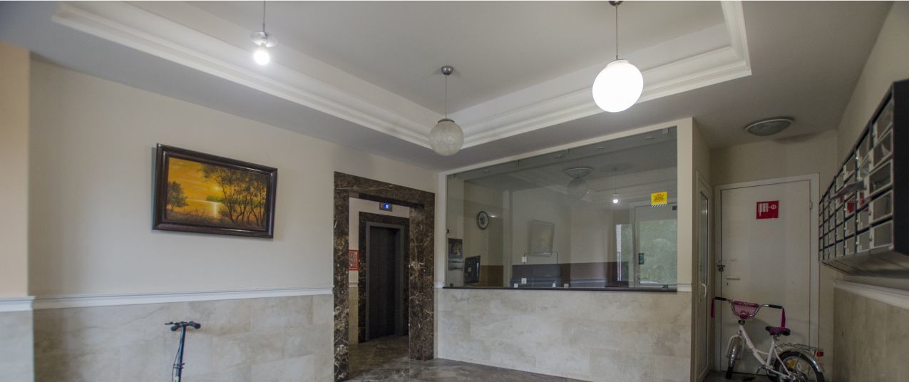 Выходя из лифта, вы сразу попадаете в прихожую на две квартиры. Попасть на этаж постороннему невозможно. Кнопка этажа в лифте срабатывает только по индивидуальному электронному ключу. Этаж закрыт так же и со стороны пожарной лестницы. На этаже видеонаблюдение. Кодовый автоматический замок в приквартирный холл-продолжение прихожей.