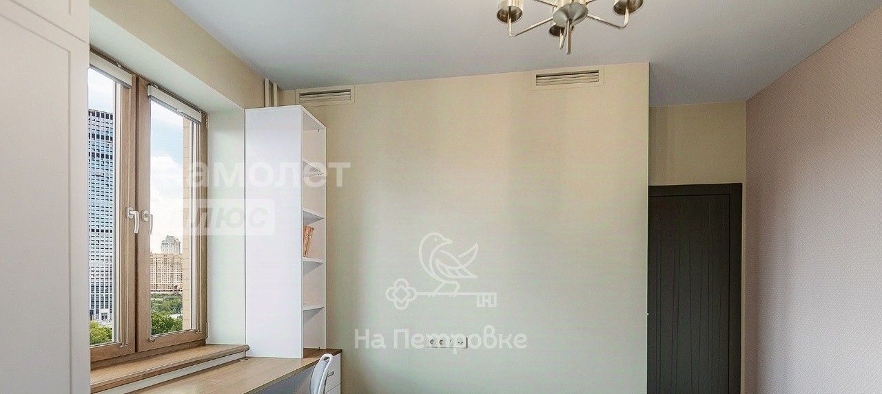 Квартира расположена на 9-м этаже 23-х этажного кирпичного дома в ЖК бизнес-класса "Айлант". Из окон открываются завораживающие виды на город и парки. Окно кабинета выходит непосредственно на МГУ.