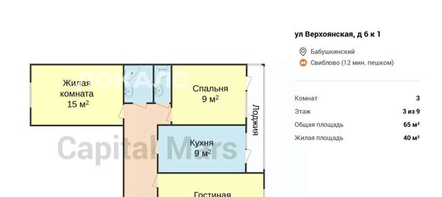 3-к кв. Москва Верхоянская ул., 6К1 (65.0 м²)