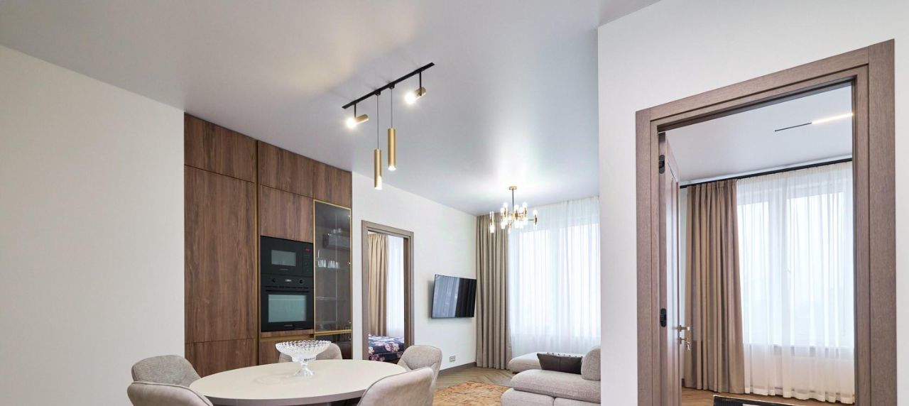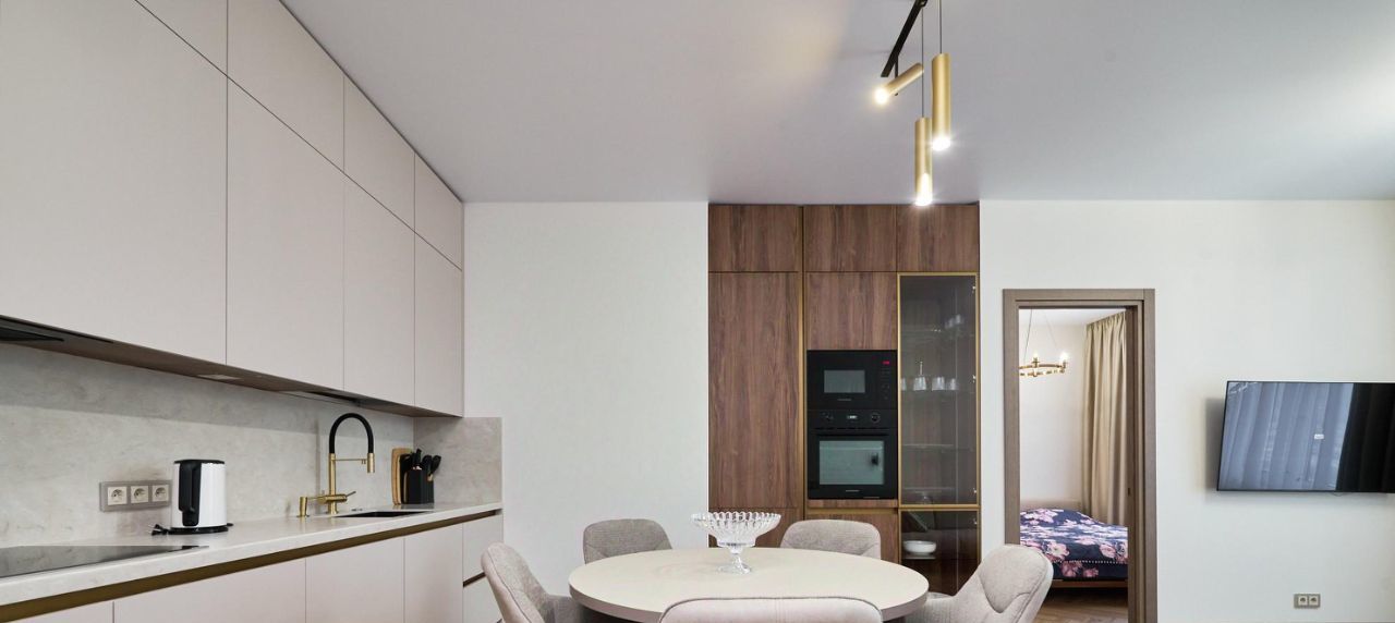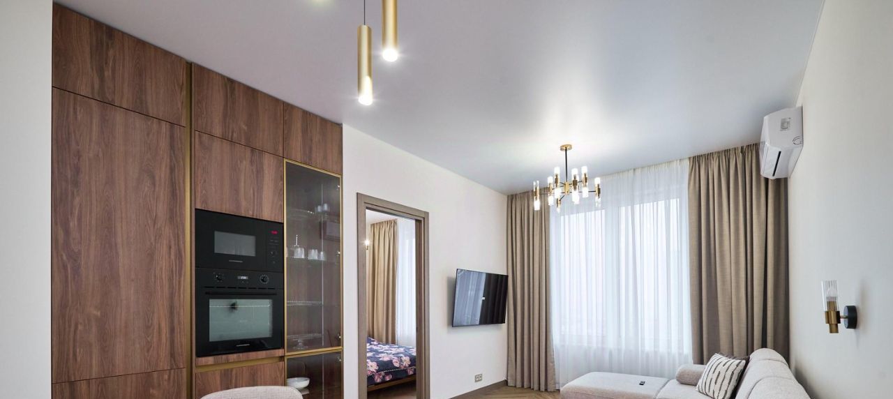 Уютная квартира, полностью меблирована и укомплектована всей необходимой для комфортного проживания техникой: посудомоечная, стиральная и сушильная машины, варочная панель и духовой шкаф, СВЧ-печь, кондиционер, телевизор.