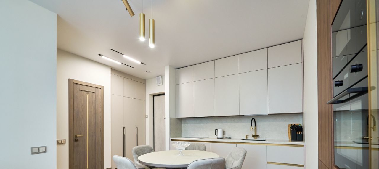 Квартира 3Е формата. Функциональная планировка включает: столовую с выделенной зоной кухни, мастер спальню с ванной комнатой, гостиную и гостевую ванную.